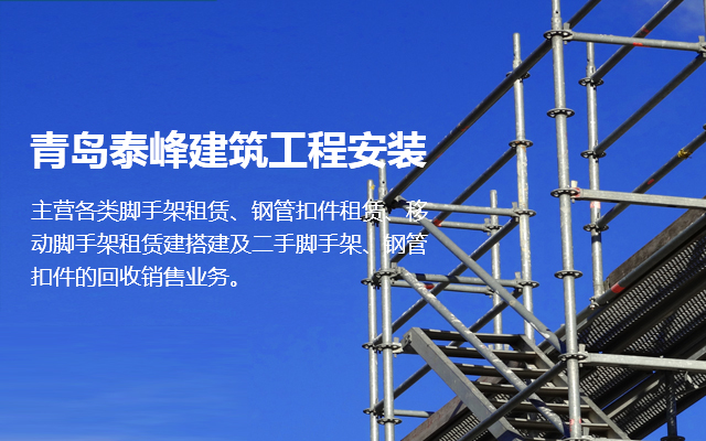 青島泰峰建筑工程安裝有限公司主營各類腳手架租賃、鋼管扣件租賃、移動腳手架租賃建搭建及二手腳手架、鋼管扣件的回收銷售業務。公司實力雄厚,擁有鋼管約3000噸、扣件70萬只、鋼笆7萬多片塔吊、人貨電梯多臺;總資產達到1000多萬元。是一家具有腳手架搭建、水電安裝專業承包施工資質的企業,并成為青島市五金協會的會員單位。且多次參與高層建筑、建筑裝修、玻璃幕墻、橋梁、隧道、地鐵、電廠維修施工、造船等行業的施工,并獲得施工單位的一致好評。 人無信不立,有信則強公司以“薄利多銷、服務取勝”為經營宗旨...
